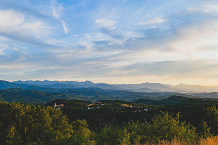 A beautiful view towards evening at sunset of the hills in Alta Langa, Piedmont - Italy