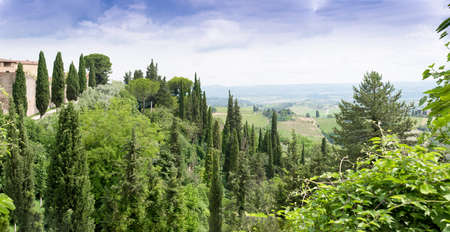 Panoramic view from the medieval town San Gimignano in Tuscany.