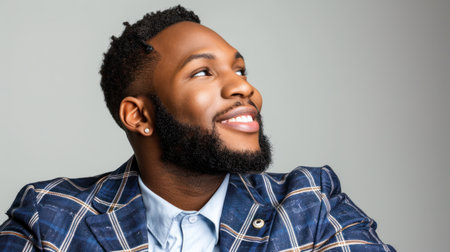 Confident and Successful Young Black Man with Striking Eyes and Warm Smile, Isolated on Black.
