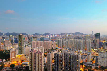 Aerial view Panomara Cityscape of Kowloon District in Hong Kong, China