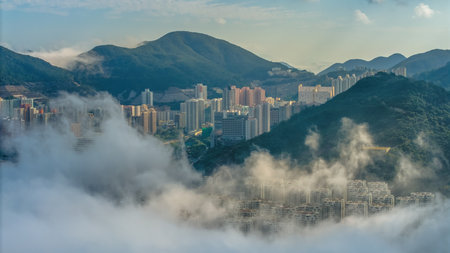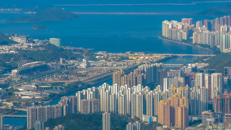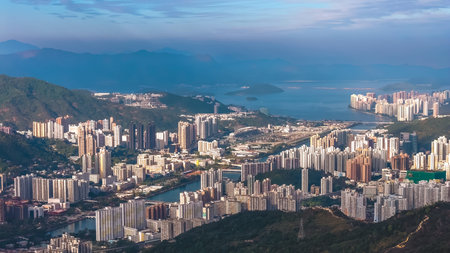Sha Tin, Hong Kong 09 November 2021: Top view of Hong kong residential district
