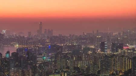 Soft evening colors illuminate dense urban landscape of Kowloon Jan 18 2026