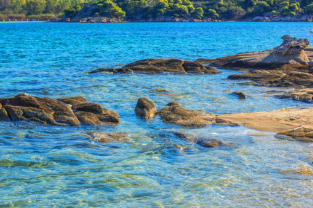 coast line stones in water aquamarine color sea bay south scenic view environment