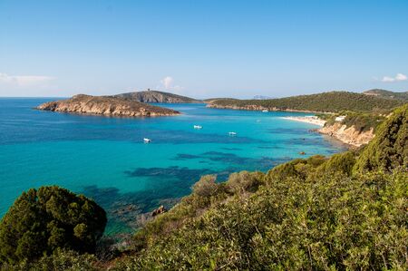 Wonderful beach di Cala Cipolla of Chia bay, Sardinia, Italy. View of beautiful beach di Cala Cipolla, Sardinia island, Italy. Beautiful sea and beach di Cala Cipolla, Chia bay, Sardinia island, Italy
