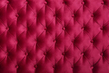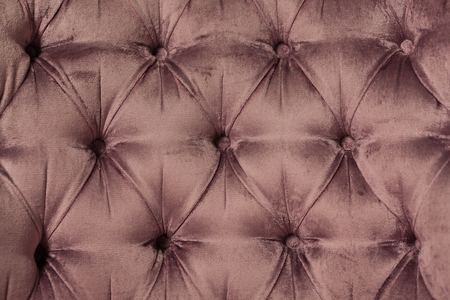 Coach-type velours screed tightened with buttons. Chesterfield style quilted upholstery backdrop close up. Capitone pattern texture background