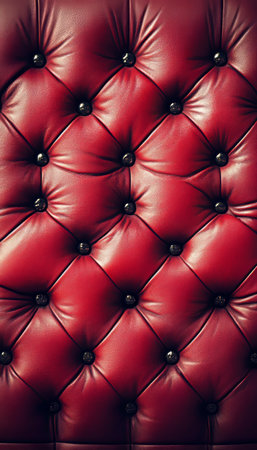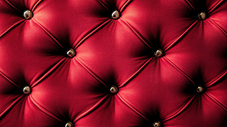 This beautiful close-up image features an elegant red upholstered fabric, showcasing button tufting and a rich texture. Perfect for interior design inspiration or textile studies.