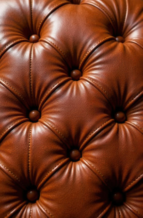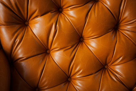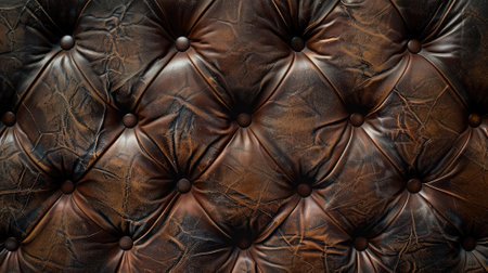 Close-up view of luxurious brown leather upholstery showcasing a meticulously crafted tufted pattern, adding a touch of elegance and sophistication to furniture