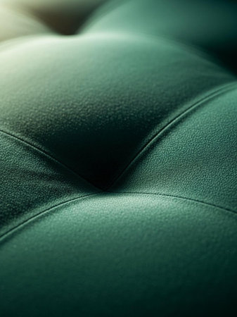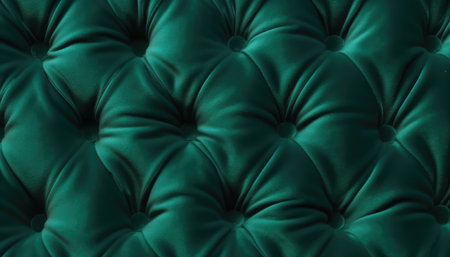 Green velour fabric texture showcasing rich color and unique button tuft design