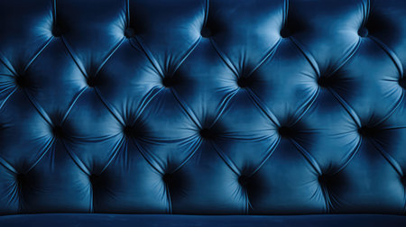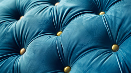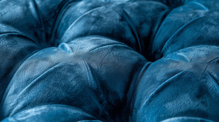 Luxurious blue velvet tufted upholstery, showing the intricate details and rich texture. Elegant interior design.