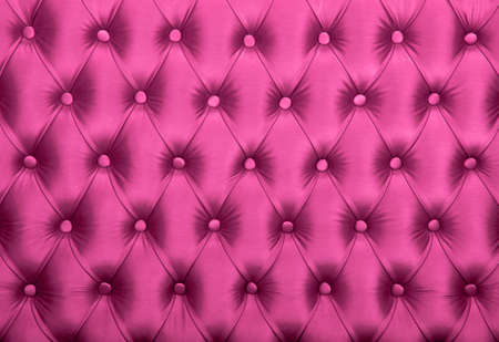 Pink capitone textile background, retro Chesterfield style checkered soft tufted fabric furniture diamond pattern decoration with buttons, close up