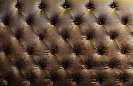 Classic brown leather sofa texture with buttons, vintage background pattern, upholstery design