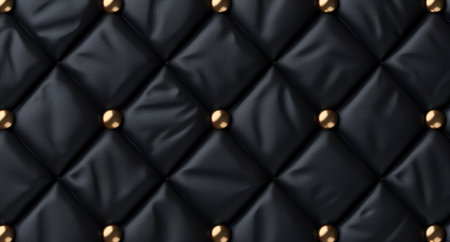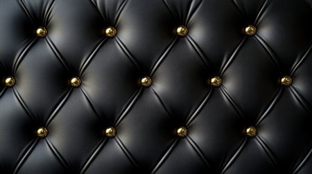 Luxurious background of black leather with gold button tufting, ideal for upscale interior design concepts