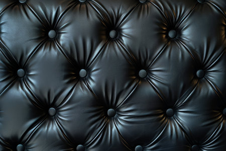 Tufted leather material forming a textured pattern with buttons, creating a luxurious and classic background for design, fashion, or interior concepts