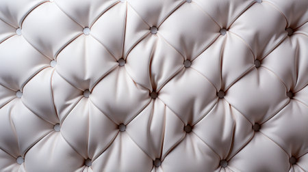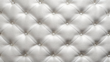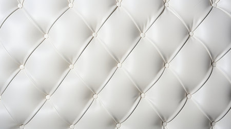 This image highlights the intricate diamond-shaped tufting of a pristine white leather upholstery. The seamless, symmetrical pattern and uniform button accents create a visually captivating.