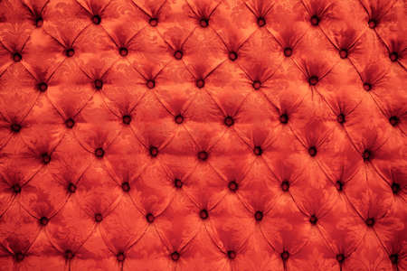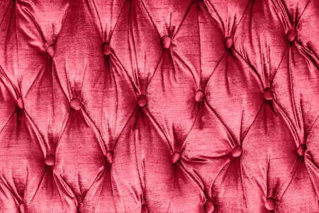 Quilted sofa background. Red color fabric texture. Luxury furniture pattern.