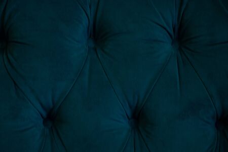 Quilted velour buttoned classic blue color fabric wall pattern background. Elegant vintage luxury sofa upholstery. Interior plush backdrop.