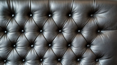 This image showcases an elegant black leather tufted upholstery featuring decorative buttons, perfect for modern interior design concepts. Ideal for furnishings, backgrounds, and home decor assignments.