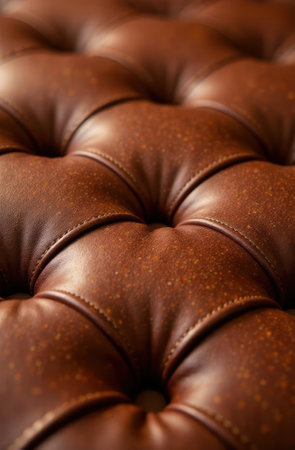 Close-up view of luxurious brown leather upholstery showcasing a meticulously crafted tufted pattern, adding a touch of elegance and sophistication to furniture