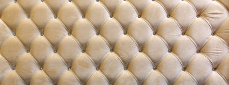 Light beige velour textile diamond pattern with buttons. Background concept. Furniture sofa cover.