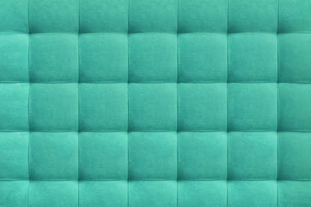 Turquoise suede leather background for the wall in the room. Interior design, headboards made of furniture fabric, furniture upholstery. Classic checkered pattern for furniture, wall, headboard
