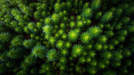 This stunning aerial view captures a vibrant green texture of grass, showcasing intricate patterns and depth, perfect for nature-themed projects.