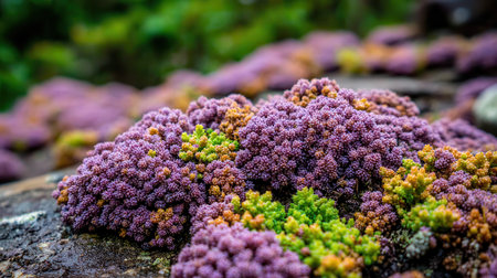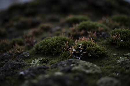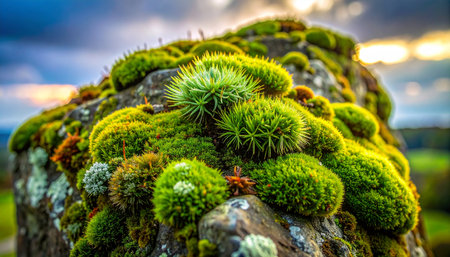 Vibrant green moss clusters thrive on rocky terrain showcasing natural resilience and lush growth