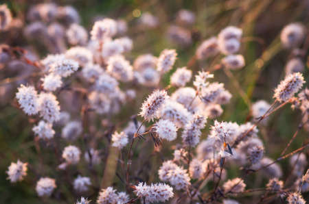 Beautiful fluffy grass early in the morning at dawn