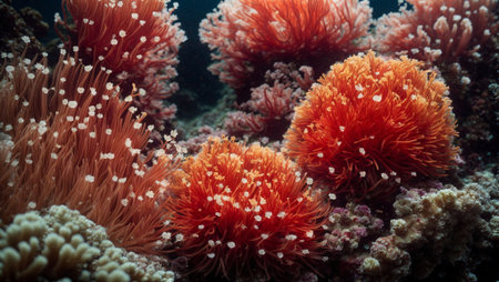 A detailed shot of a coral reef, showcasing the beauty and diversity of marine life. The image highlights the intricate structures and colors of the coral.