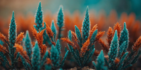AI Generated. close up macro of an unearthly plant with vibrant teal and orange colors