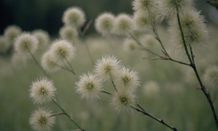Fluffy white flowers in the field on a summer day. Shallow depth of field