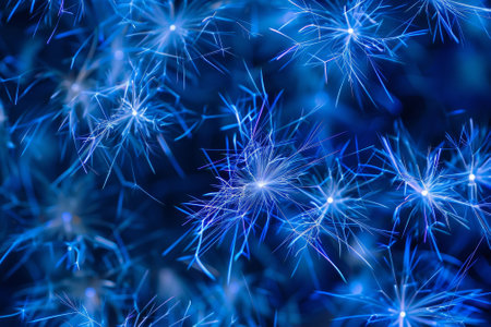 Beautiful blue crystal structures emerge from a dark background, showcasing sharp, pointed shapes that create a mesmerizing natural spectacle.