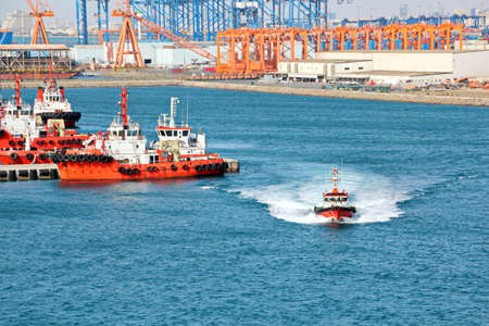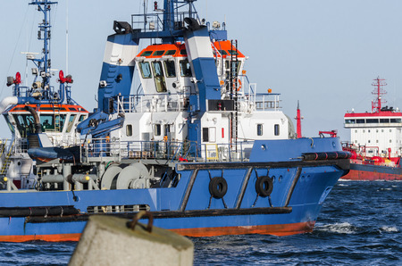 TUGBOAT. Tug flows to the designated position in the port of Gdynia