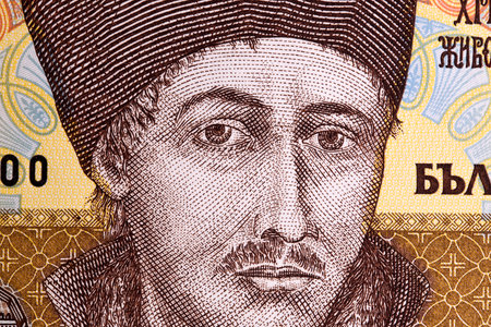 Zahariy Hristovich Dimitrov a closeup portrait from Bulgarian money
