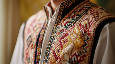 Traditional Embroidered Vest Worn at Cultural Celebration in Vibrant Colors