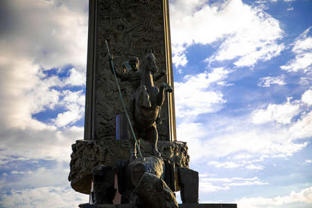 victory monument. moscow poklonnaya gora.the Moscow obelisk, located on Pobediteley Square in Victory Park on Poklonnaya Gora. victory monument against the blue sky