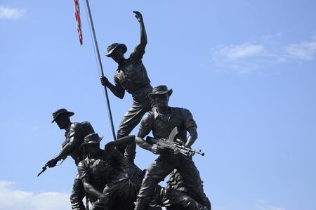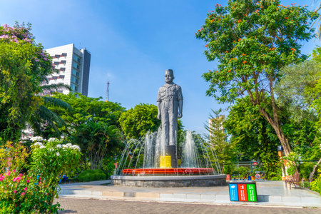 Surabaya, Indonesia - November, 05, 2017: One of the statues of the heroes monument in Surabaya, Java, Indonesia