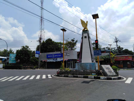 Yogyakarta, Indonesia. February 09, 2018: historical building of Tugu Yogyakarta at the interchange