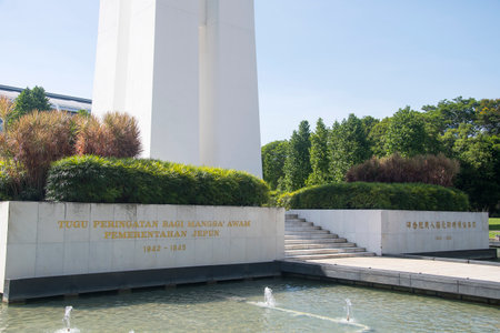 Singapore- Mar 19, 2022: Memorial monument erected to house the ashes of people who have died during the Japanese Occupation in Singapore