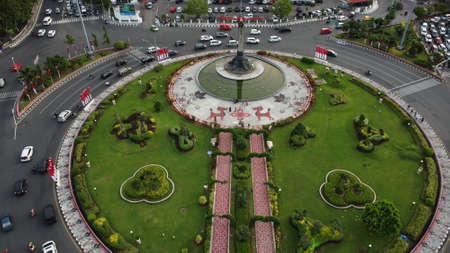 Aerial view Tugu Muda, the famous landmark building in Semarang, Indonesia