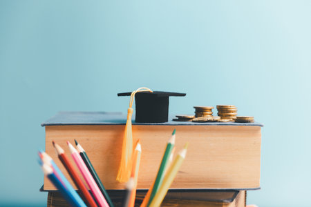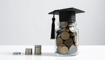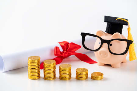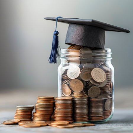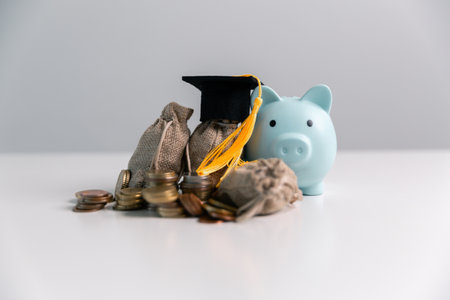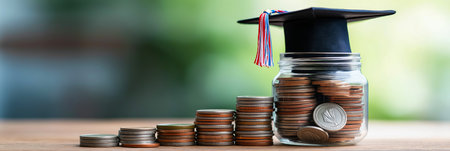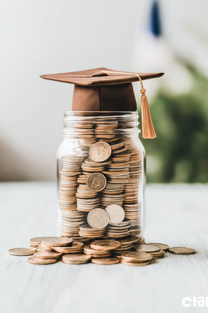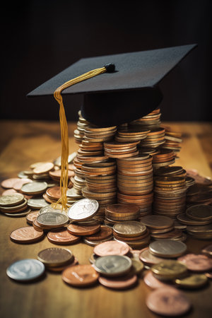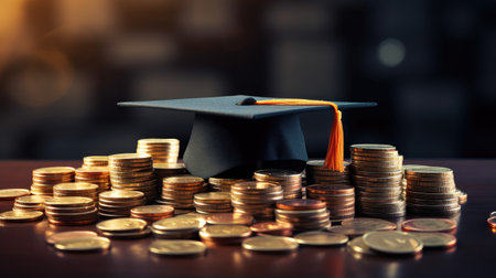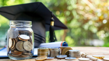 Invest in your future: Graduation cap and coins symbolize educational savings.