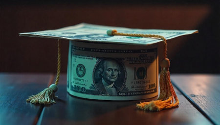 Graduation cap made of money representing educational financial costs