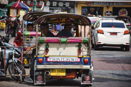 Bangkok, Thailand - May 26th, 2018 : Tuk tuk on Chinatown street at daylight in Bangkok Thailand