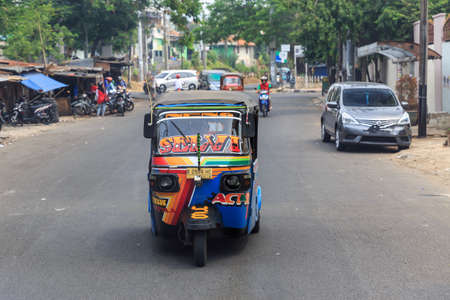 Typical view of people commuting with auto rickshaw traffic in the streets of Jakarta, Indonesia, on August 2, 2015