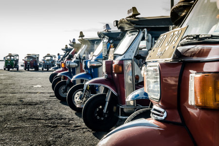 CHONBURI, THAILAND - JUNE 4 : Group of Tuk tuk on 4 June 2016 in Sriracha, Chonburi, Thailand
