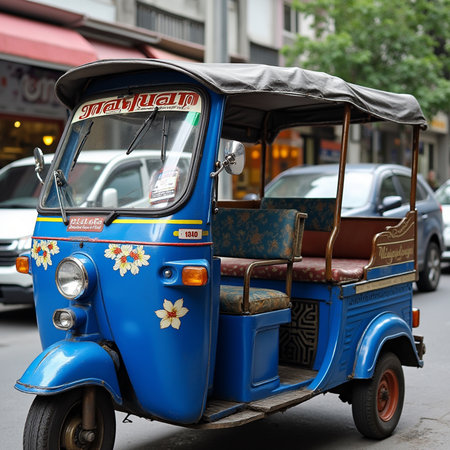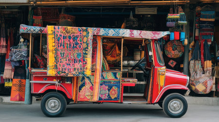 A tuk-tuk adorned with traditional fabrics and local crafts, showcasing the rich cultural heritage of the region.