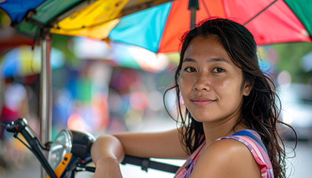 A trisikad driver pedals vigorously, showcasing the dedication of workers who keep the local economy moving. Ai-Generated.
