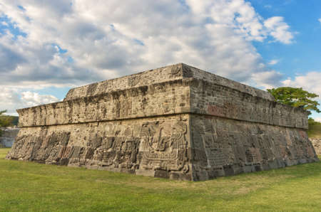 Temple of the Feathered Serpent in Xochicalco. Pre-Columbian archaeological site in Mexico. UNESCO World Heritage Site