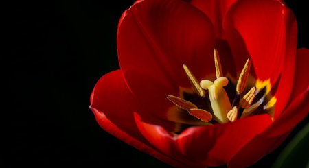 Red tulip on a black background, close-up, macro