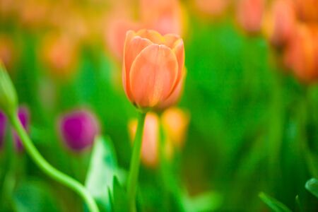 Colorful of orange color tulips flowers as floral background