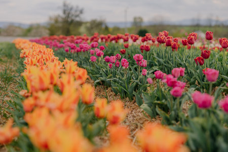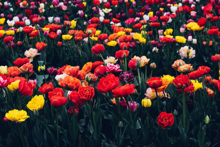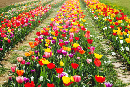 A field of colorful tulips in spring